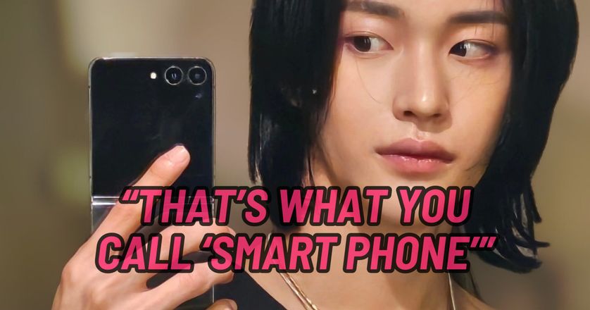 Eagle-eyed fans noticed that Wonbin used his Galaxy Z Flip as a paper clip while recording songs. The phone was folded, holding a paper in place as he sang.