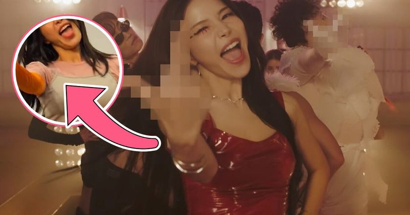 While the middle finger is part of the official choreography, this is not allowed during music show promotions. So, she makes another gesture that’s not obscene.