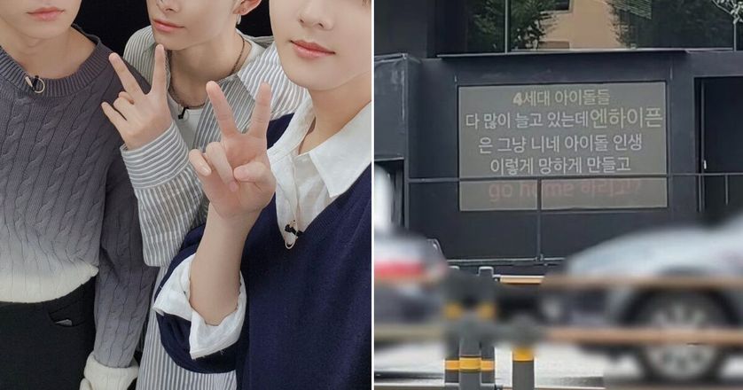 Netizens are divided after members of ENHYPEN‘s fandom sent a protest truck to HYBE to directly criticize the members.